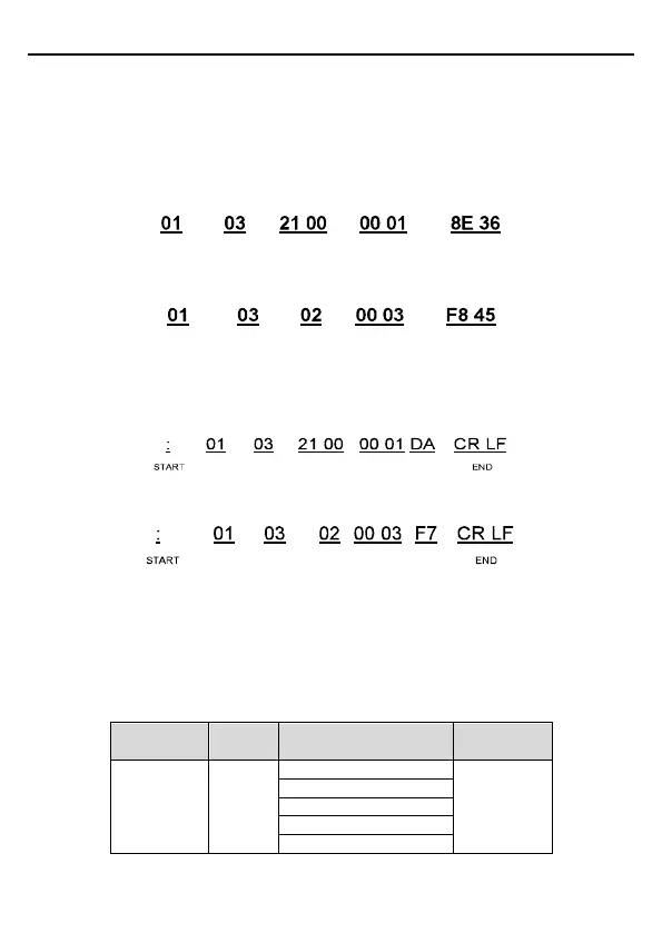 Example 1: read the state word 1 of the VFD with the address of 01H (refer to the parameter