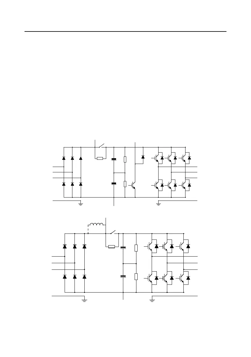 The diagram below shows the simplified main circuit diagram of the VFD. The rectifier converts
