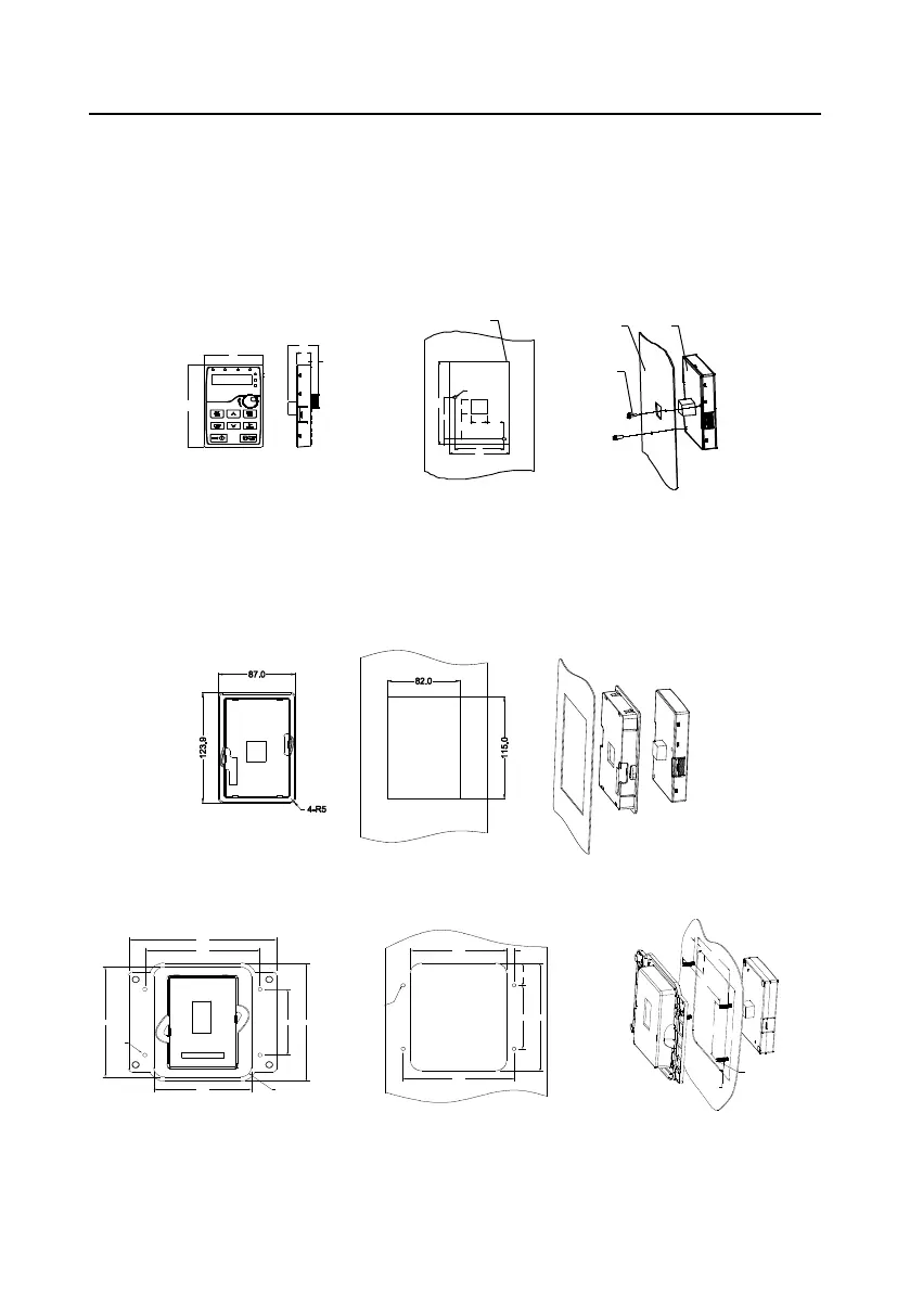 Hol e-c utting size a nd diagr am fo r non-b racke t k eyp ad ins ta llati on