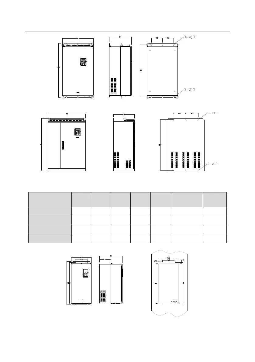 Dimensions for Vfds of AC 3PH 520V (-15%)-690V (+10%)