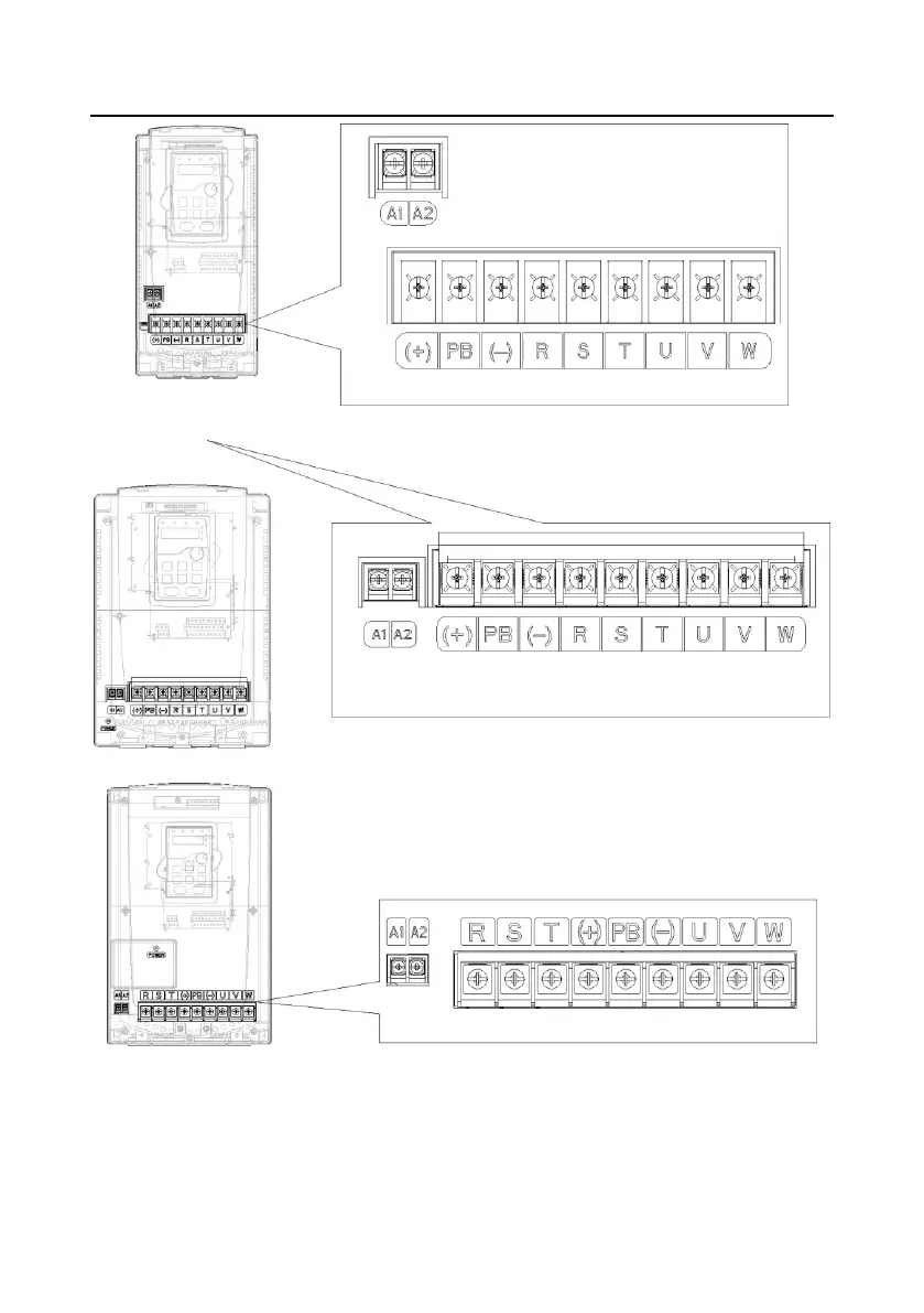 Figure 4-12 Main circuit terminals diagram of VFDs of 380V (7.511kW) and 500V (418.5kW)