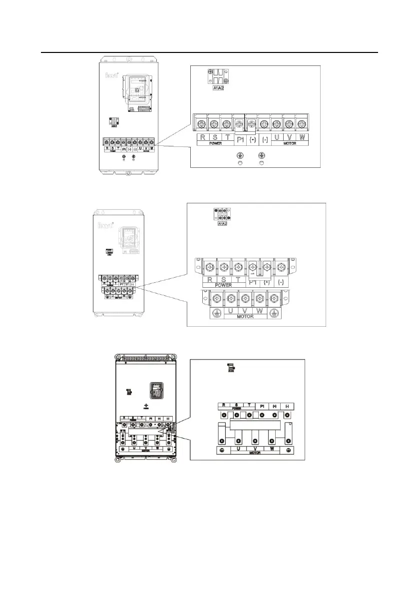 Figure 4-15 Main circuit terminals diagram of VFDs of 380V (37–55kW), 500V (22–55kW), and 660V