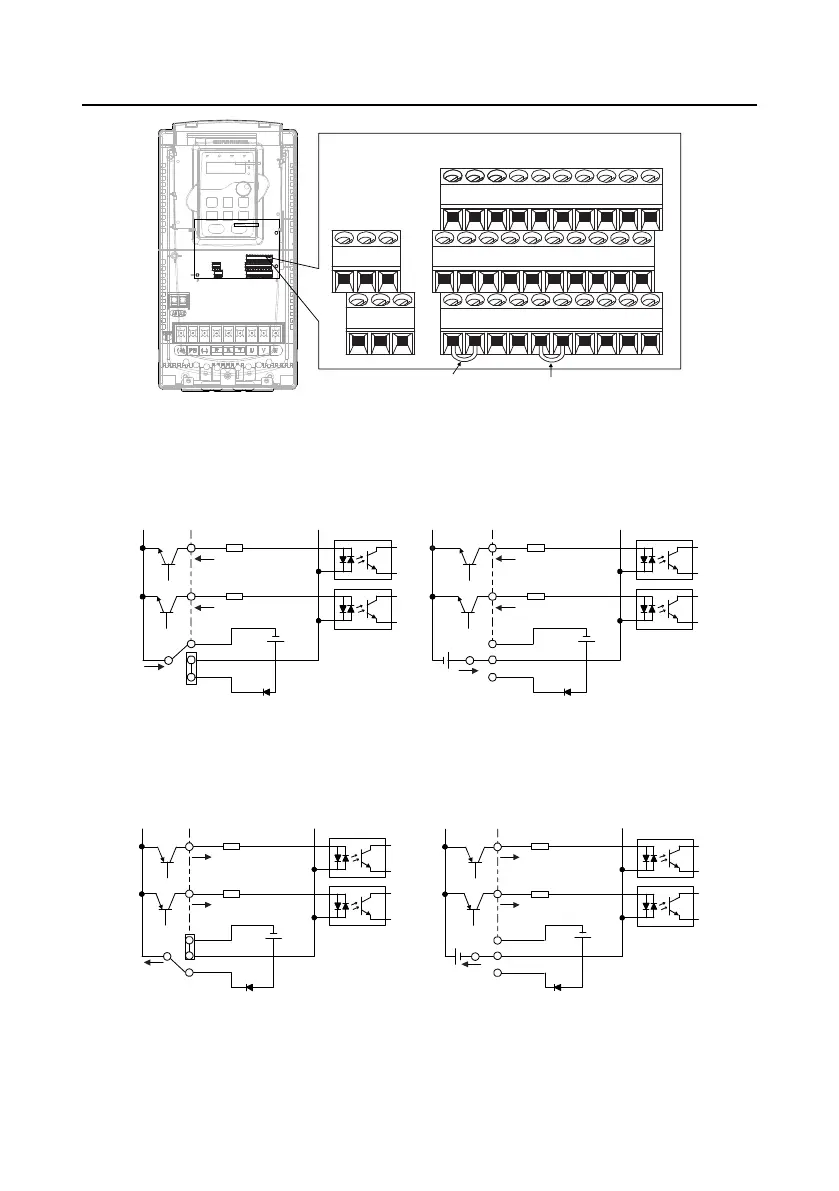 If the signal is from NPN transistor, set the U-shaped short-circuit connector between +24V and PW