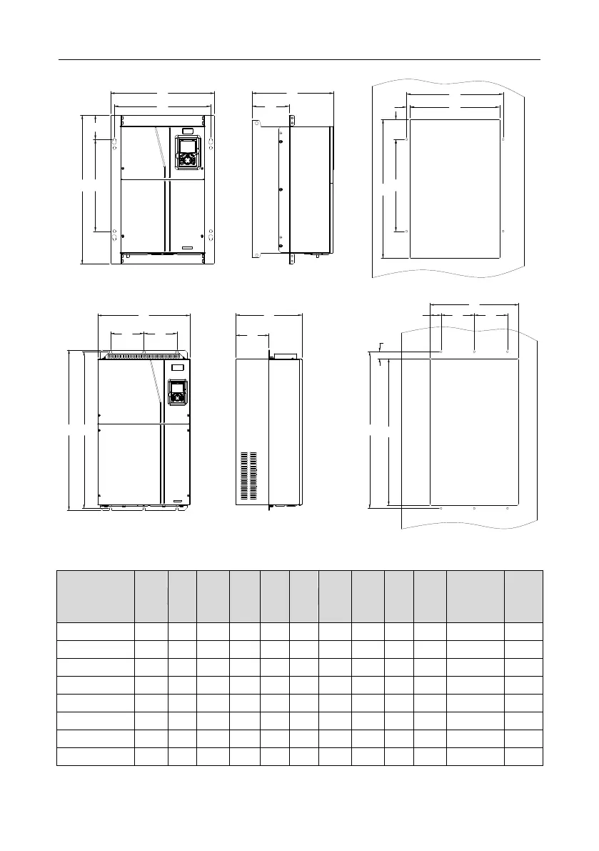 Table C.2 Flange installation dimensions of 380 V inverters (unit: mm)