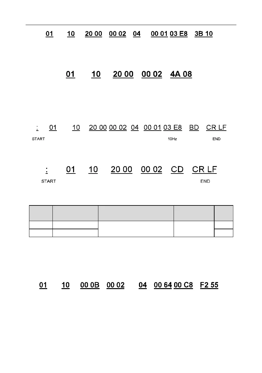 Example 2: set the ACC time of 01H VFD as 10s and the DEC time as 20s