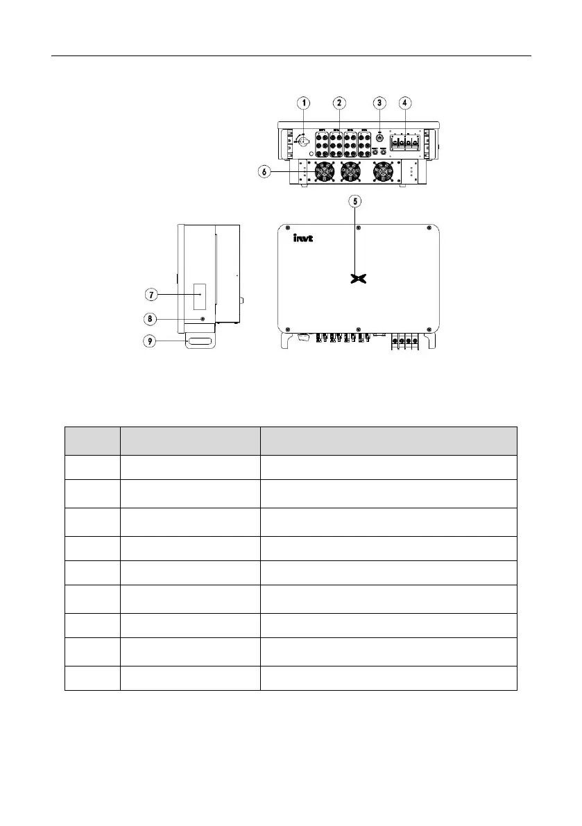 Table 2-1 Description of key exterior components of three-phase PV inverters