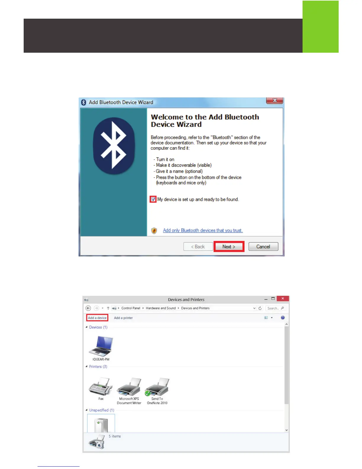 7. Windows Vista: Check the box next to “My device is set up and ready to be