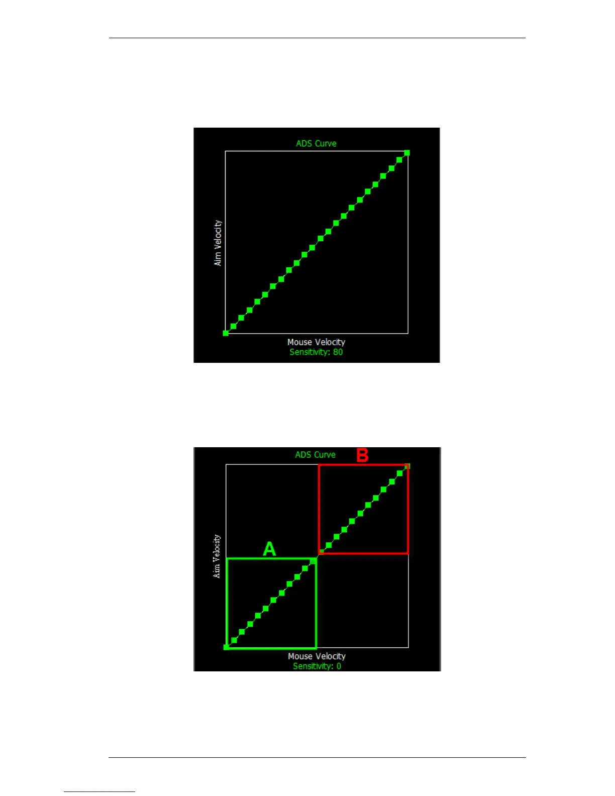 Mouse Velocity increases from left to right and Aim Velocity bottom to top.