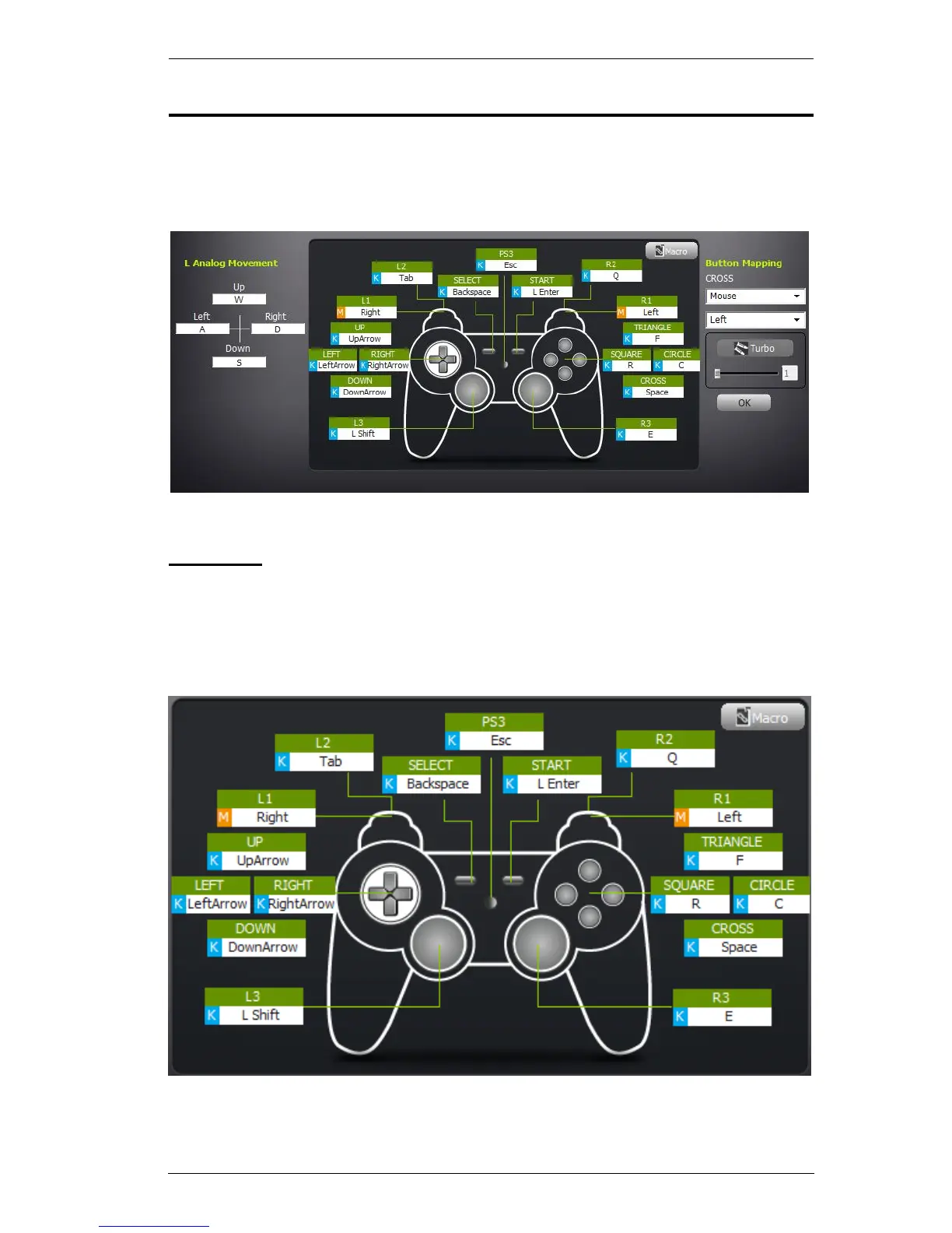 Each PS/Xbox controller button can be mapped to a keyboard, mouse, or