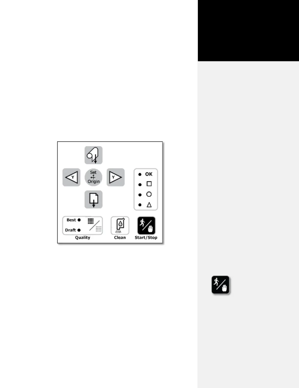The Start/Stop key toggles the printer online and ofine. If the Start/
