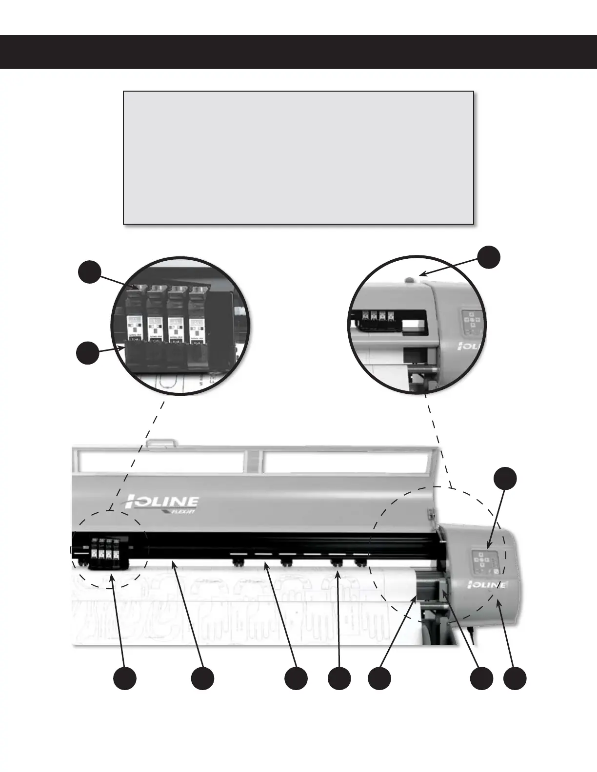 Figure 4. The Ioline FlexJet Printer Front View Close-up (safety cover lifted for clarity.)