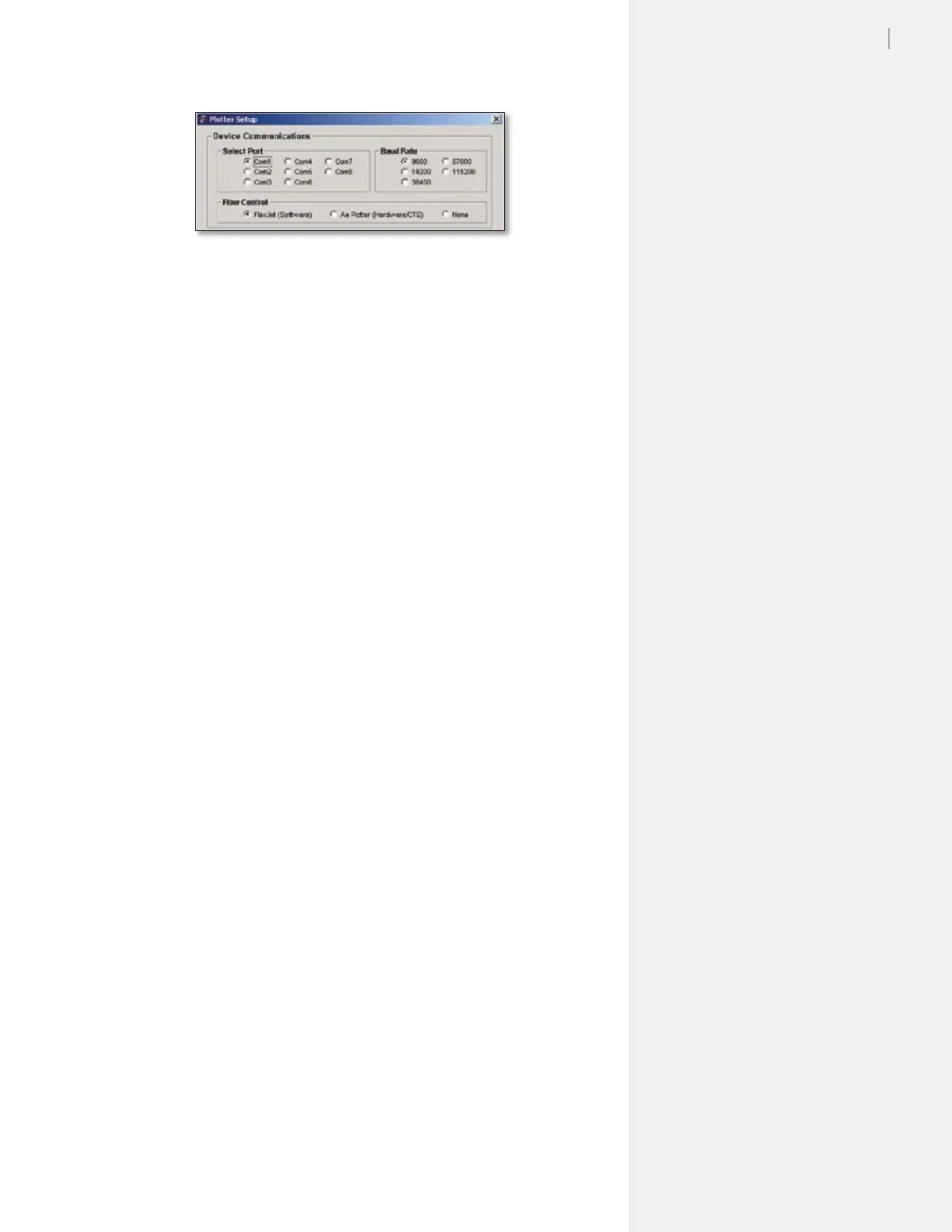 The serial port on the FlexJet has an adjustable baud rate. Available