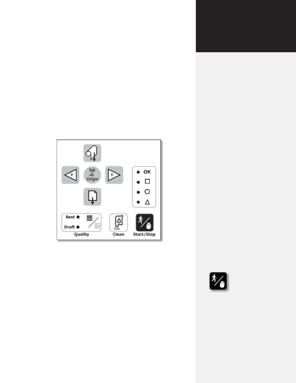 STOP mode. When the Start/Stop key is pressed again, the printer