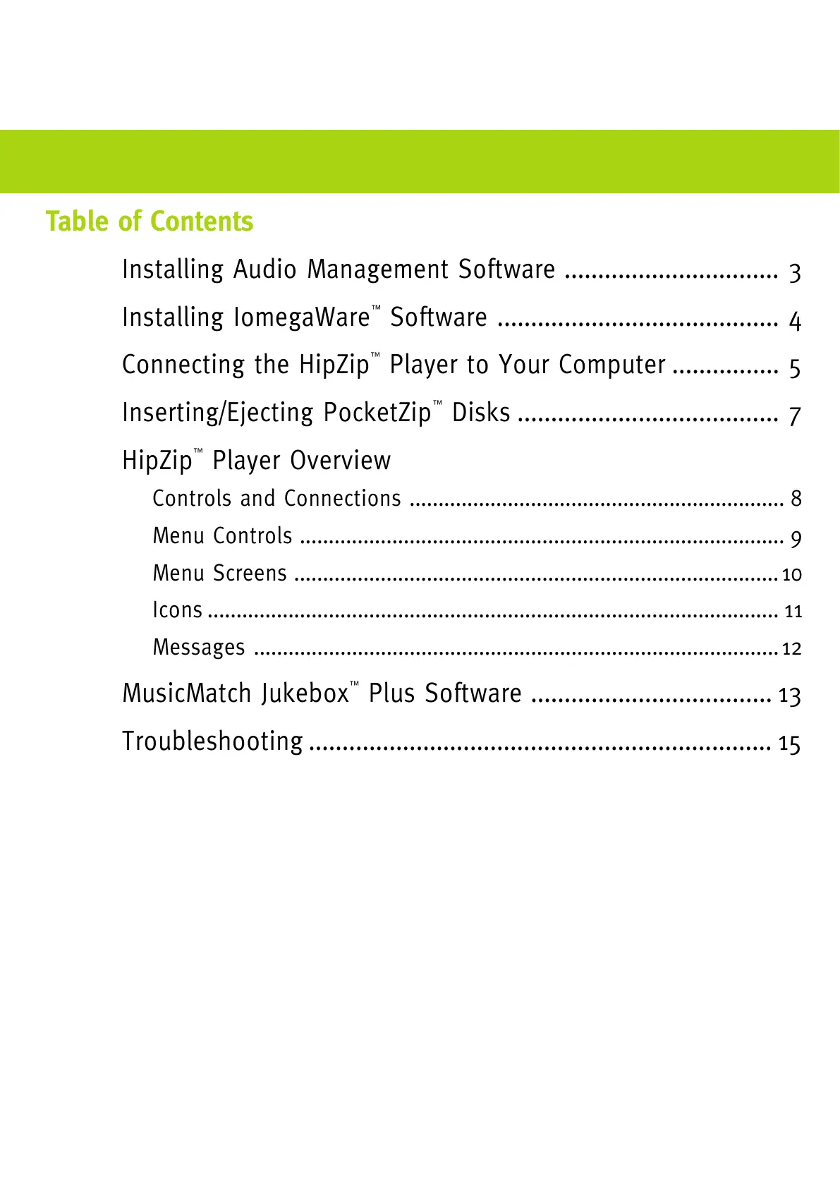 Troubleshooting ..................................................................... 15