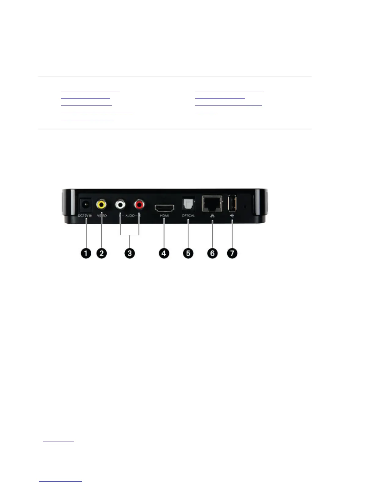 1. Power connector—Always connect the included power supply when using the ScreenPlay
