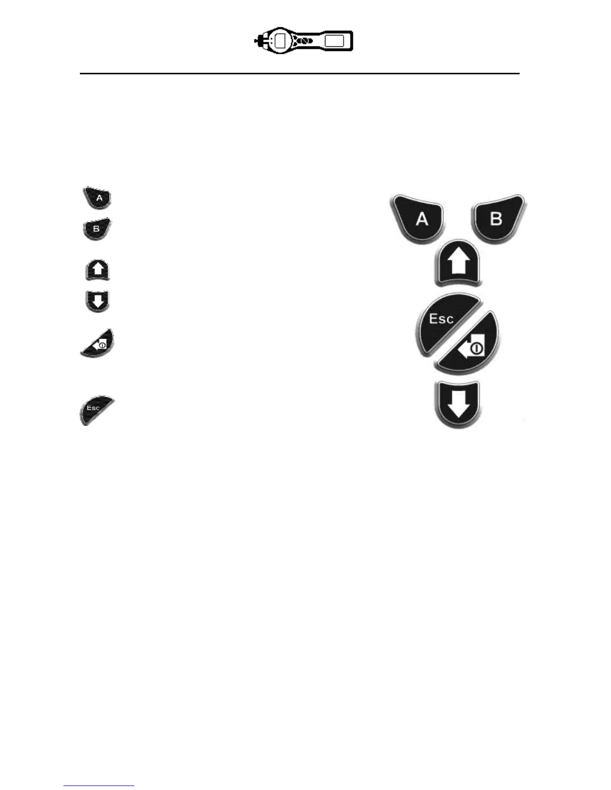 The keypad comprises two soft keys: A and B, Up and Down arrow keys, an Escape (Esc) key, and an
