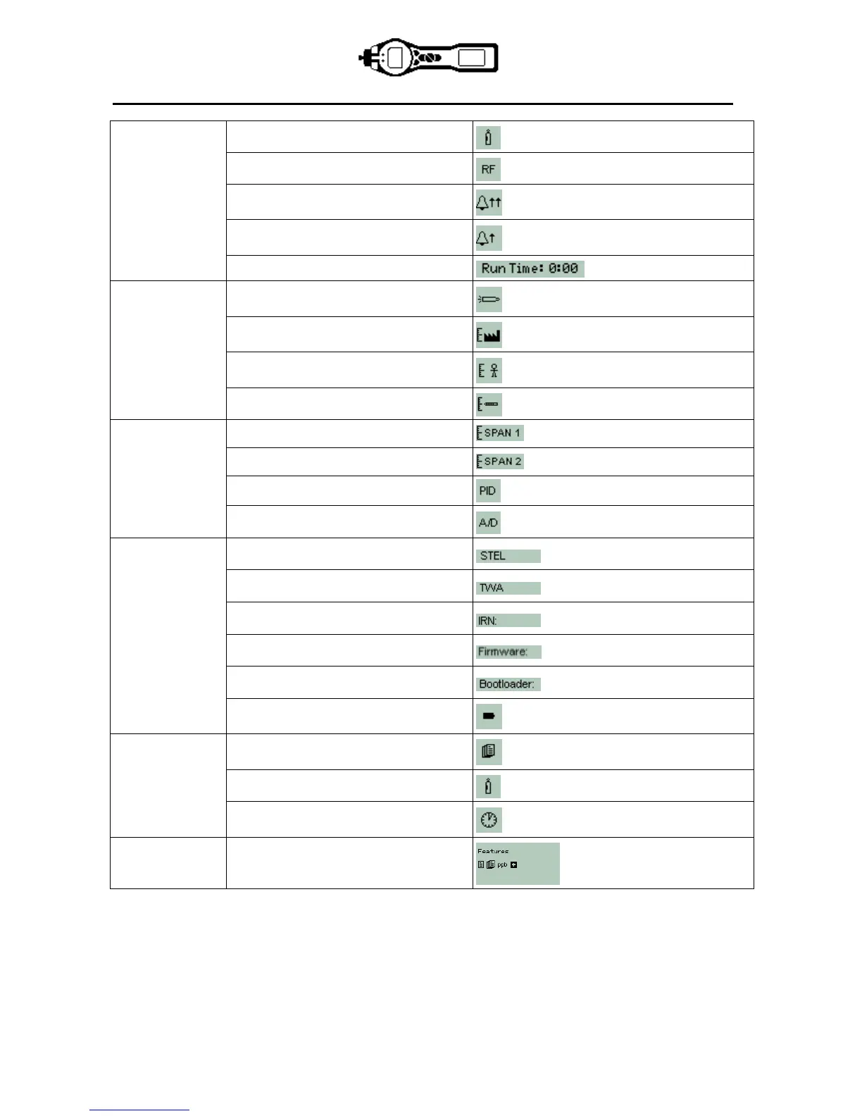 Features. An icon will appear for each