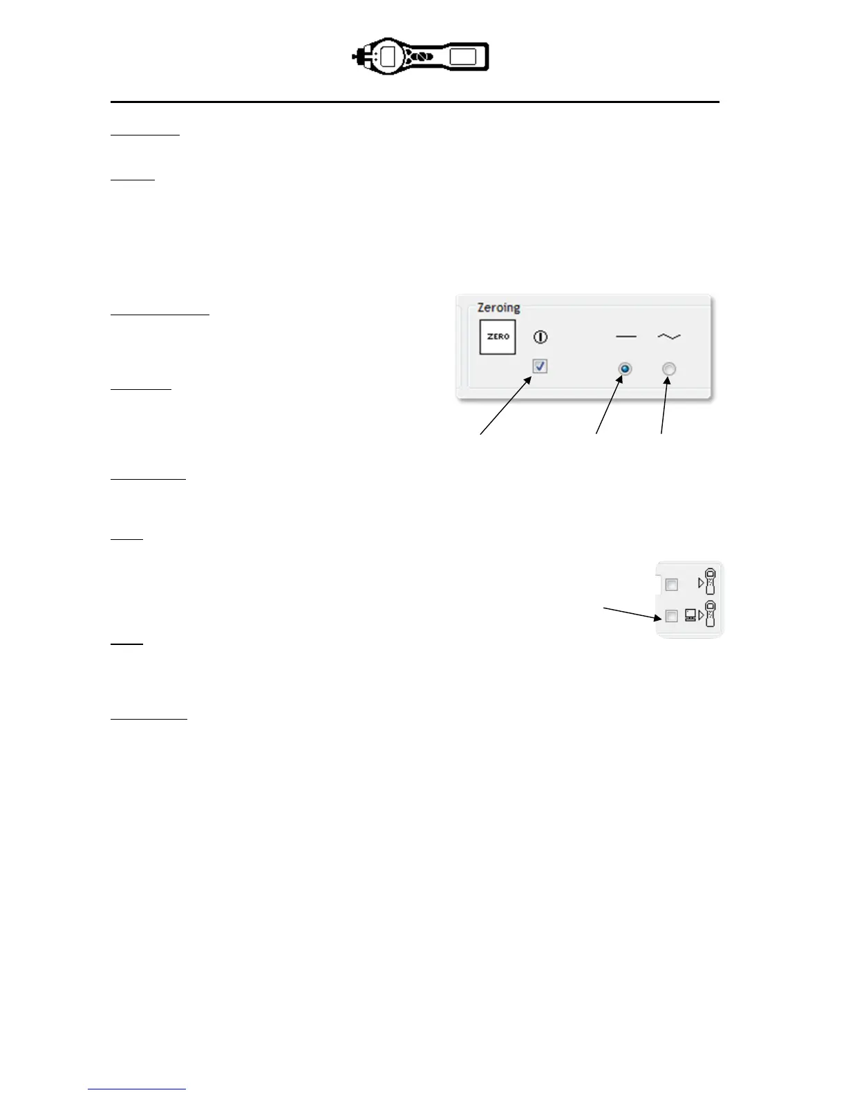 Zero at switch on Fixed zero Zero tracking