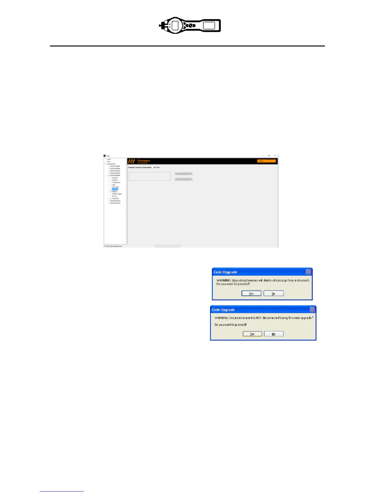 IMPORTANT: The ‘Firmware’ upgrade process will delete all data from the instrument. To avoid loss of any