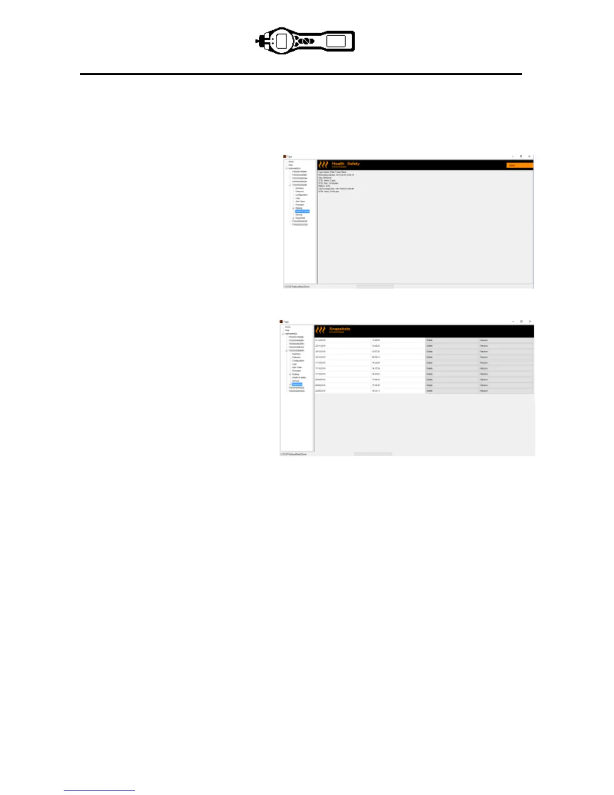 The snapshot menu also allows review of stored data when an instrument is not attached.