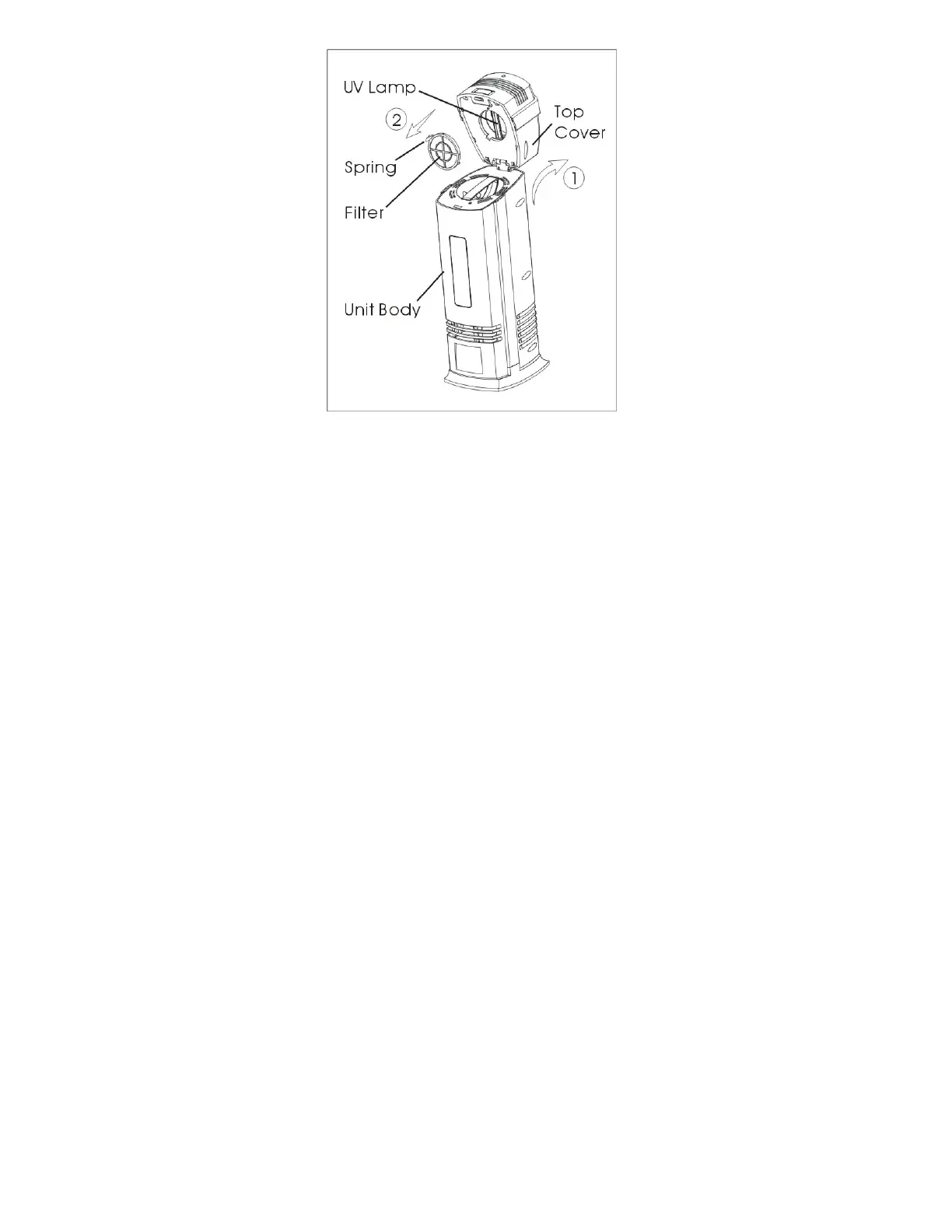 2. Install the filter into the top cover by gripping and pressing the spring on