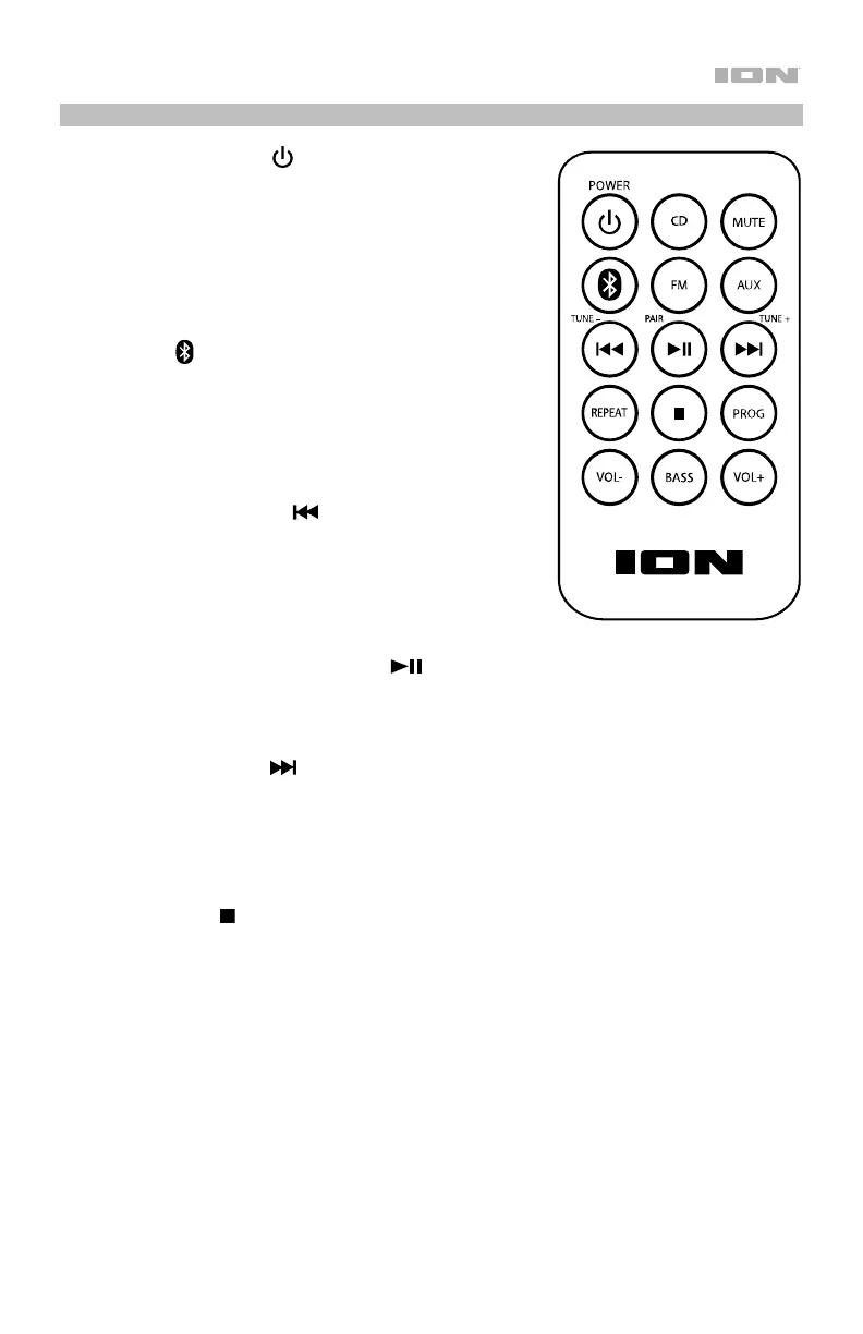 d’interrompre la lecture d’un CD. En mode Bluetooth, cette touche permet de lancer et d’interrompre la