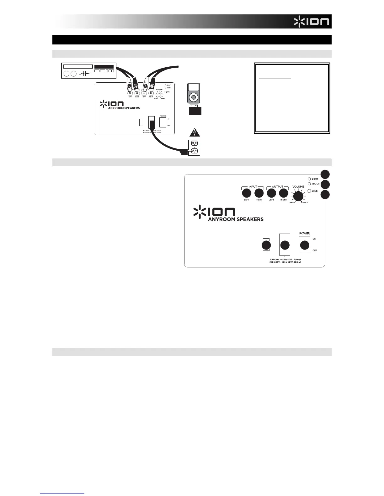 9. SYNC – Premere questo tasto per fare in modo che la cassa cerchi qualsiasi trasmettitore ANYROOM presente nell'area.