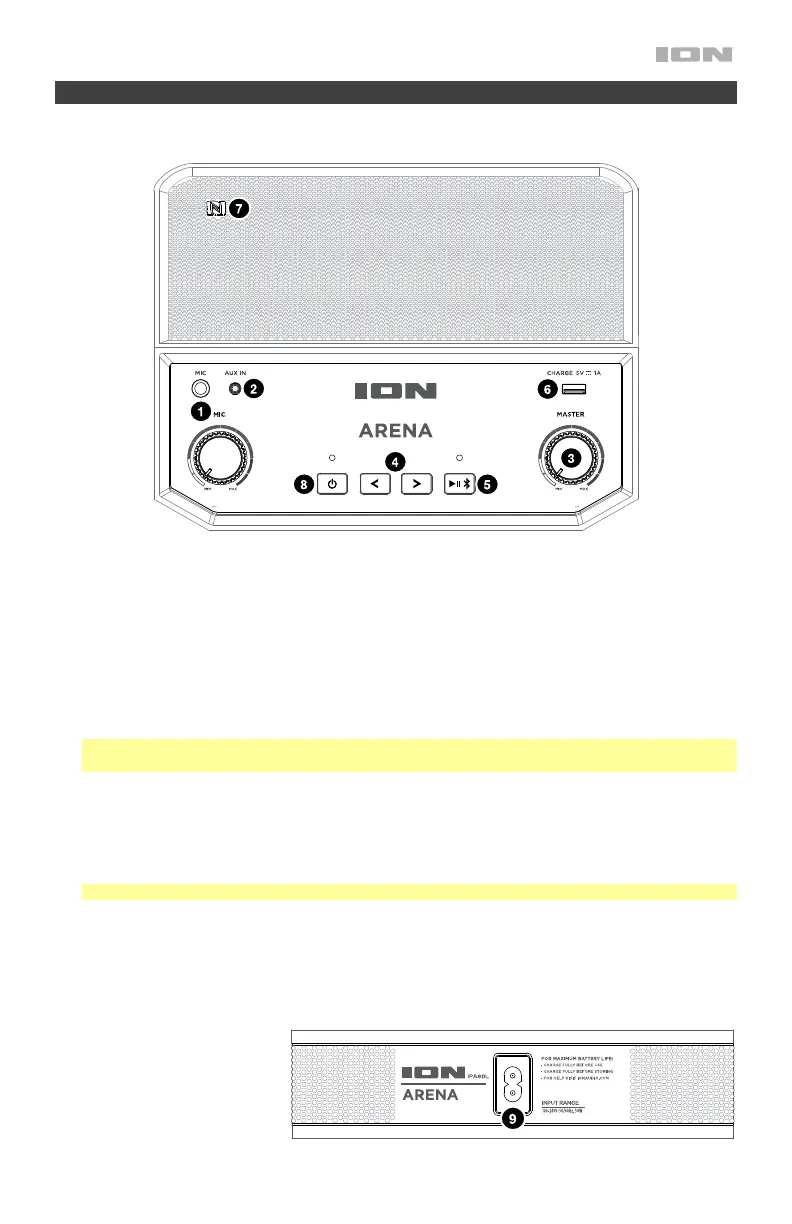 Press and hold this button to disconnect a paired Bluetooth device. If the Arena is paired with a device,