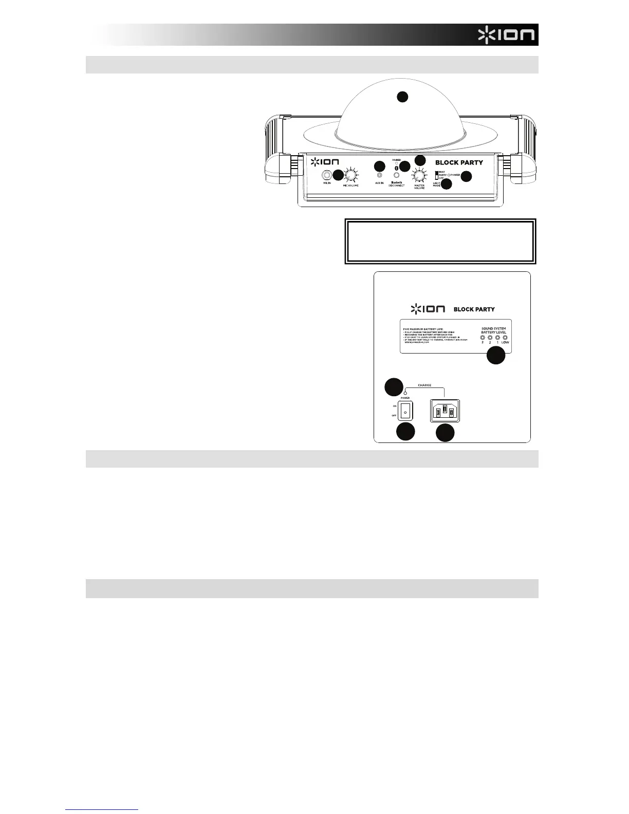 9. ON/OFF-virtakytkin: Tällä voit kytkeä Block Party in päälle ja päältä