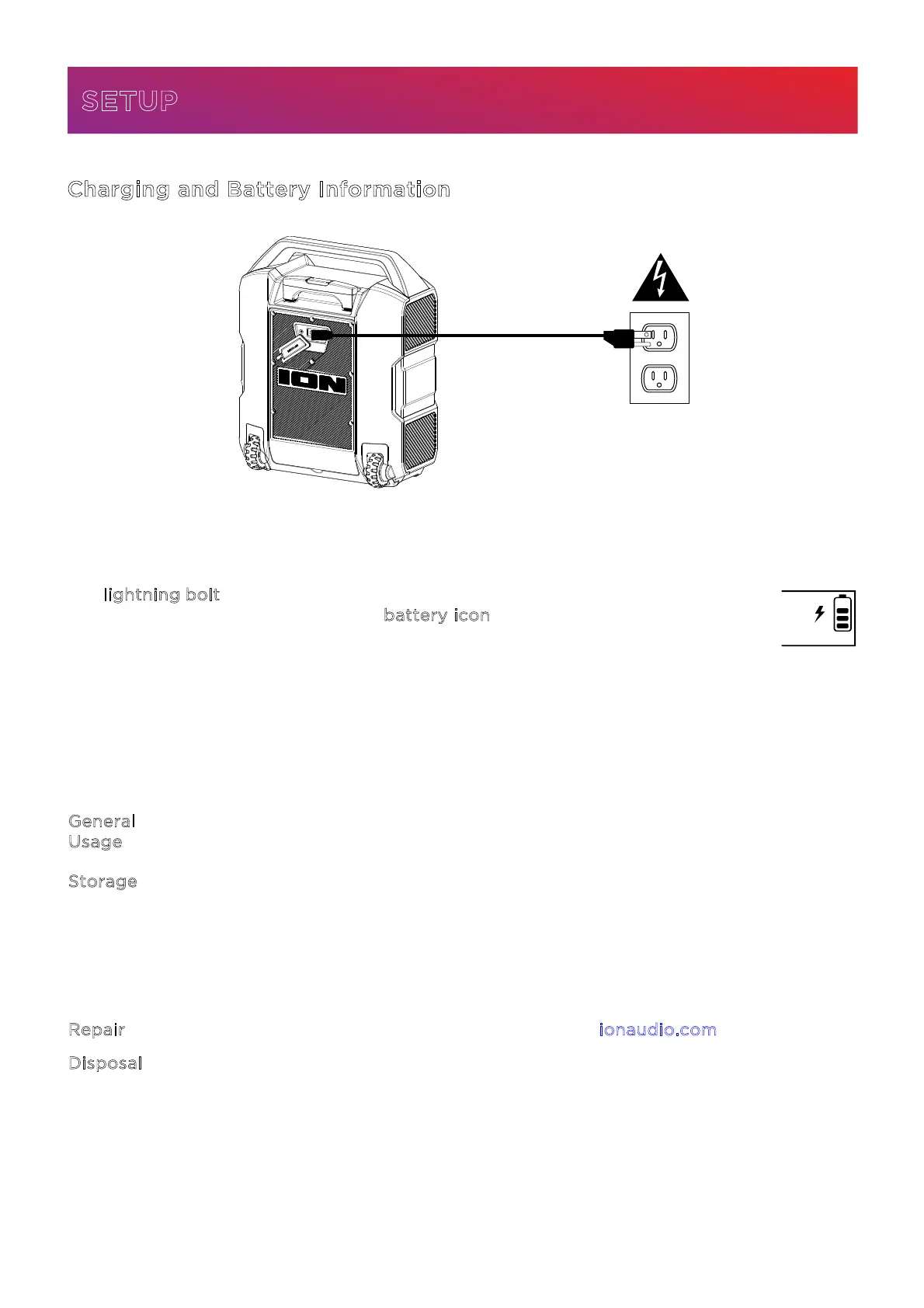 epair If the battery fails to charge, contact ION Audio at ionaudio.com.