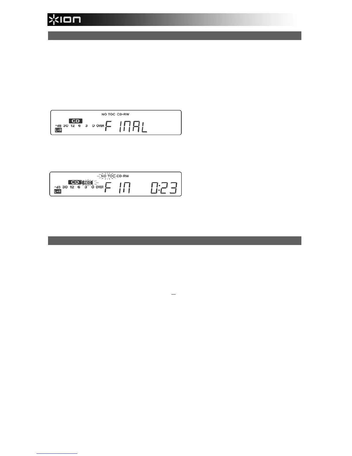 TOC si spegne e il display torna alla visualizzazione traccia/tempo. Durante la finalizzazione non funzionano i