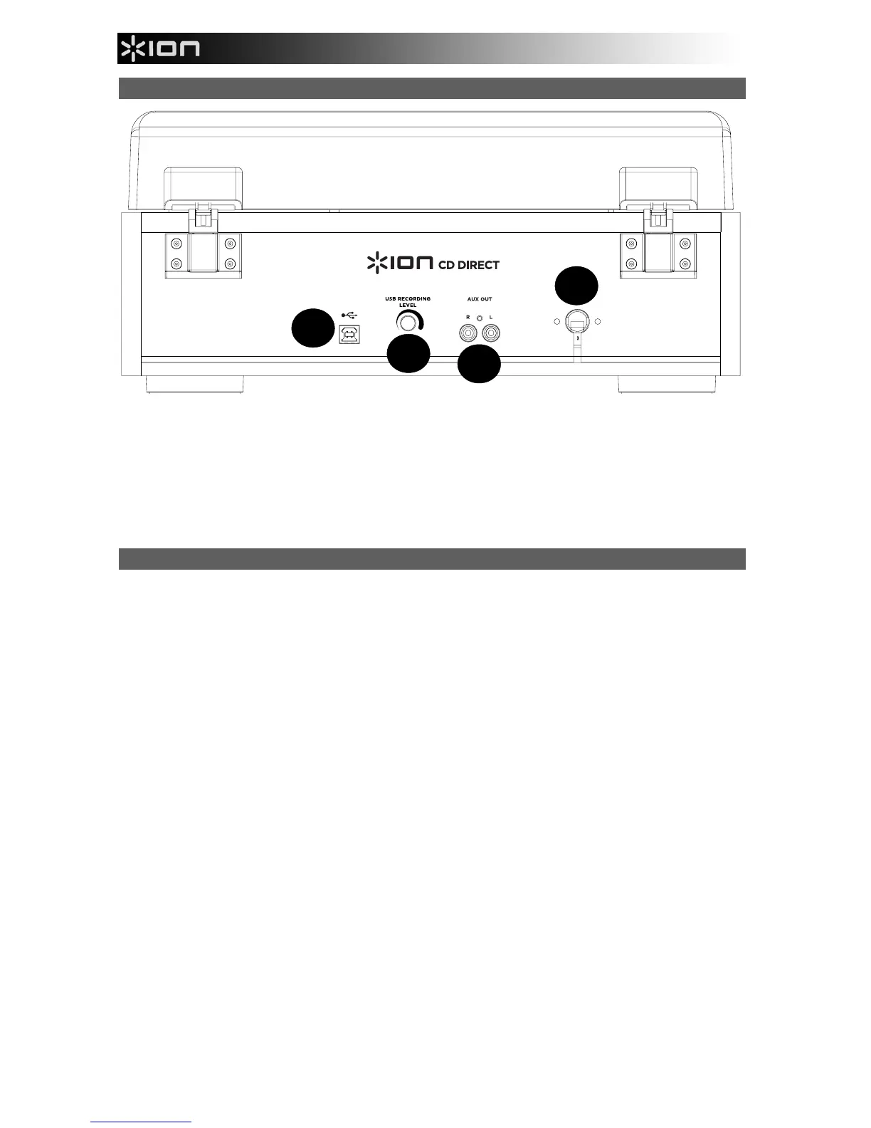 1. USB-PORT – Um Audiodateien aufzunehmen oder wiederzugeben, verbinden Sie CD DIRECT über ein USB-