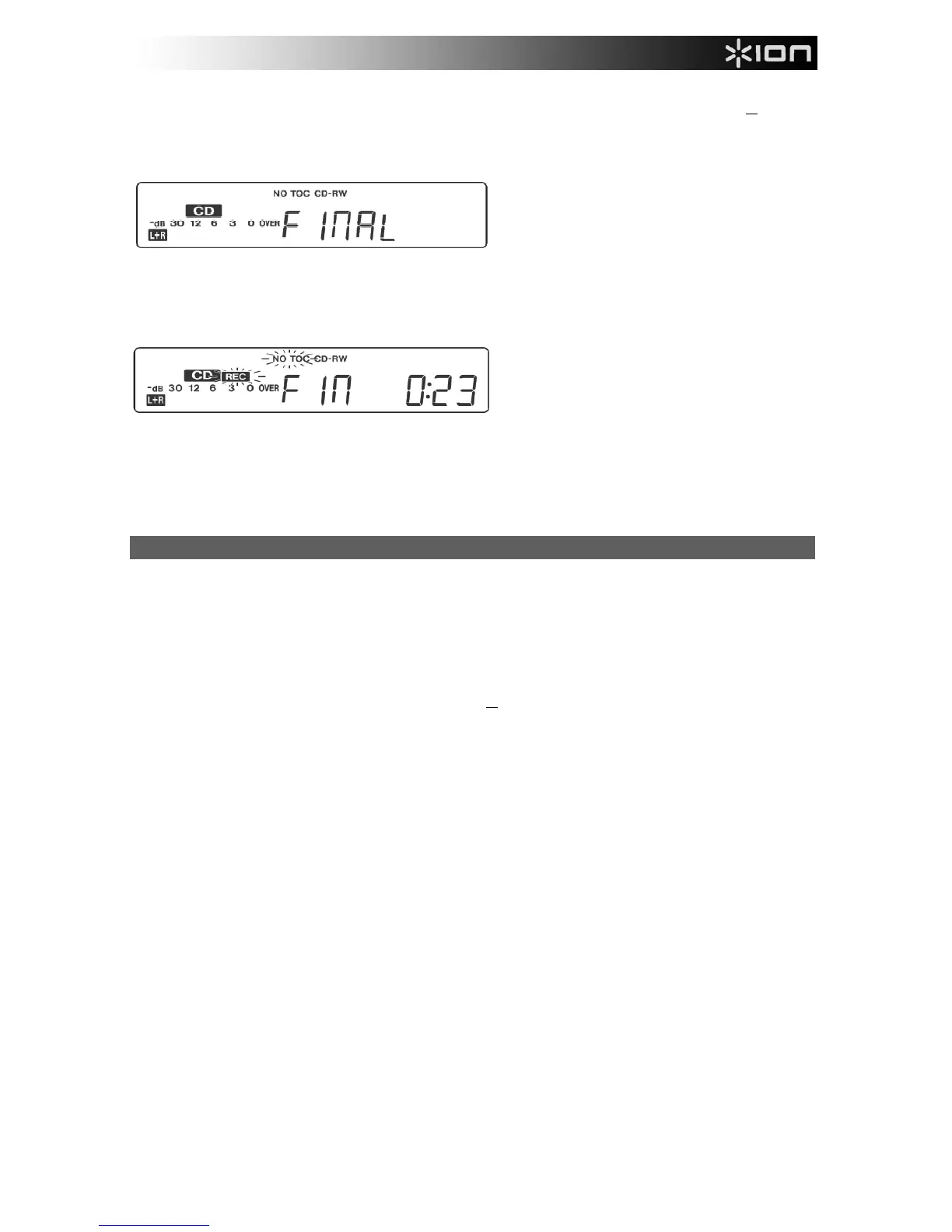 "FINAL" erscheint, wenn die Disk nicht finalisiert wurde. Wenn Sie erneut die Taste FINALISIEREN/LÖSCHEN