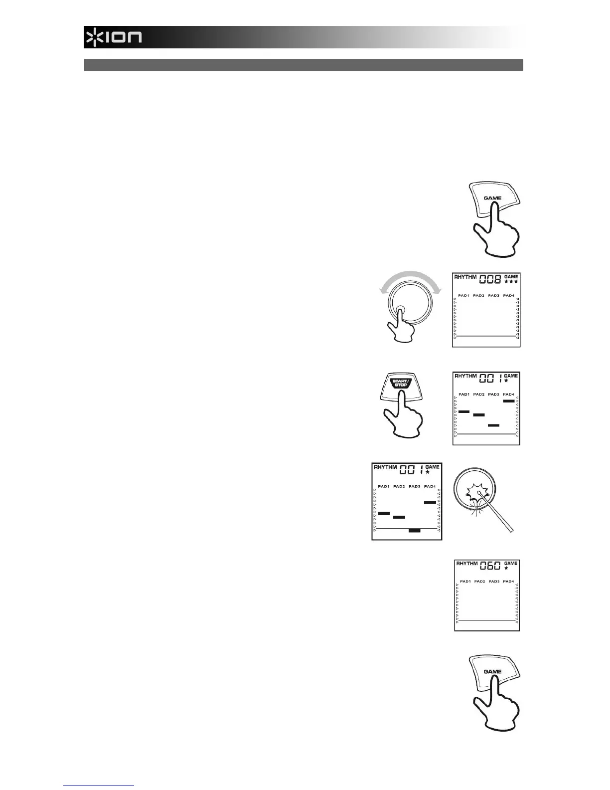 3. Druk op START / STOP om met het spel te beginnen. Kijk naar