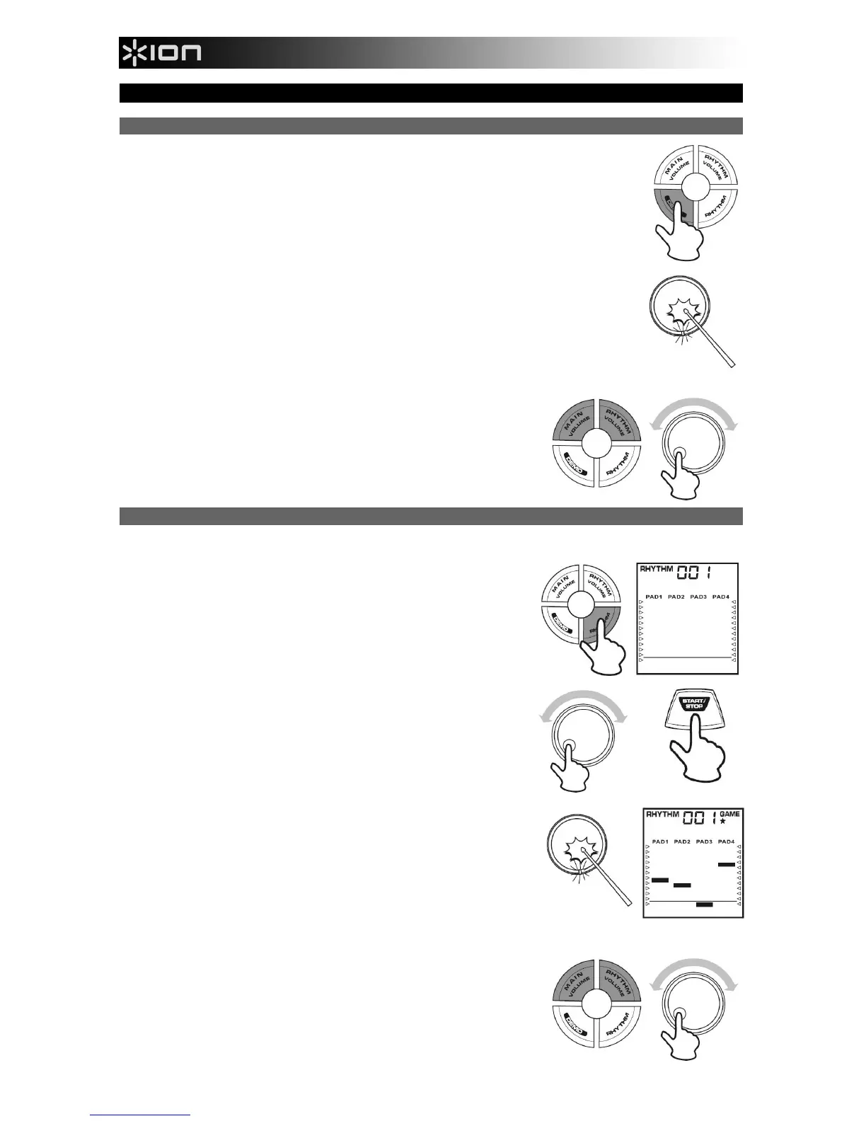2. Strike the drum pads. To play the same drum pattern as the song, watch the