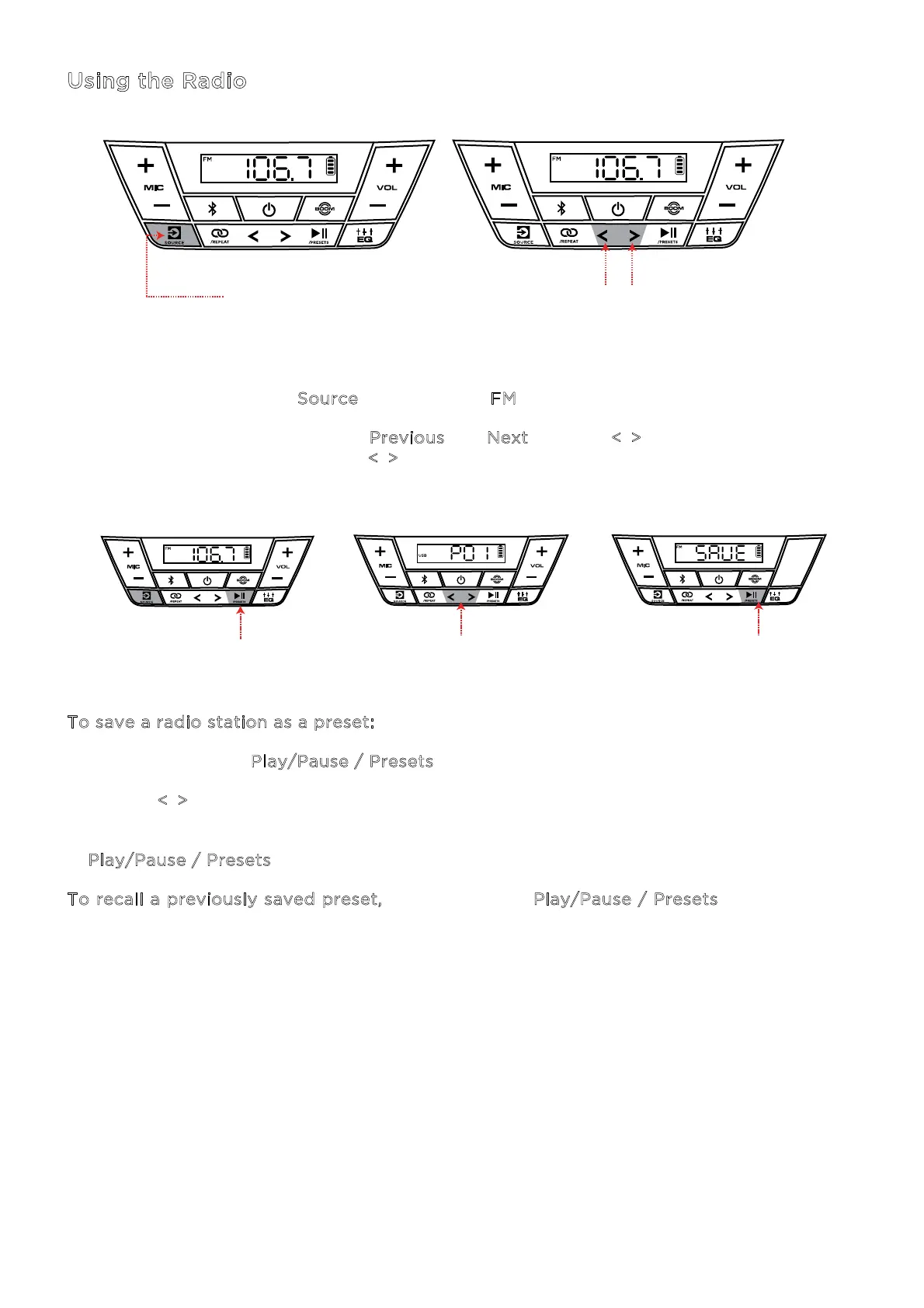 o recall a previously saved preset, briefly press the Play/Pause / Presets button to cycle