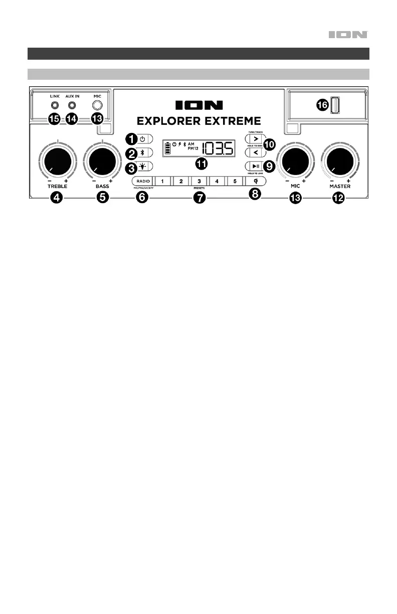 5. Control de graves: Gire esta perilla para controlar la cantidad de graves. El valor por
