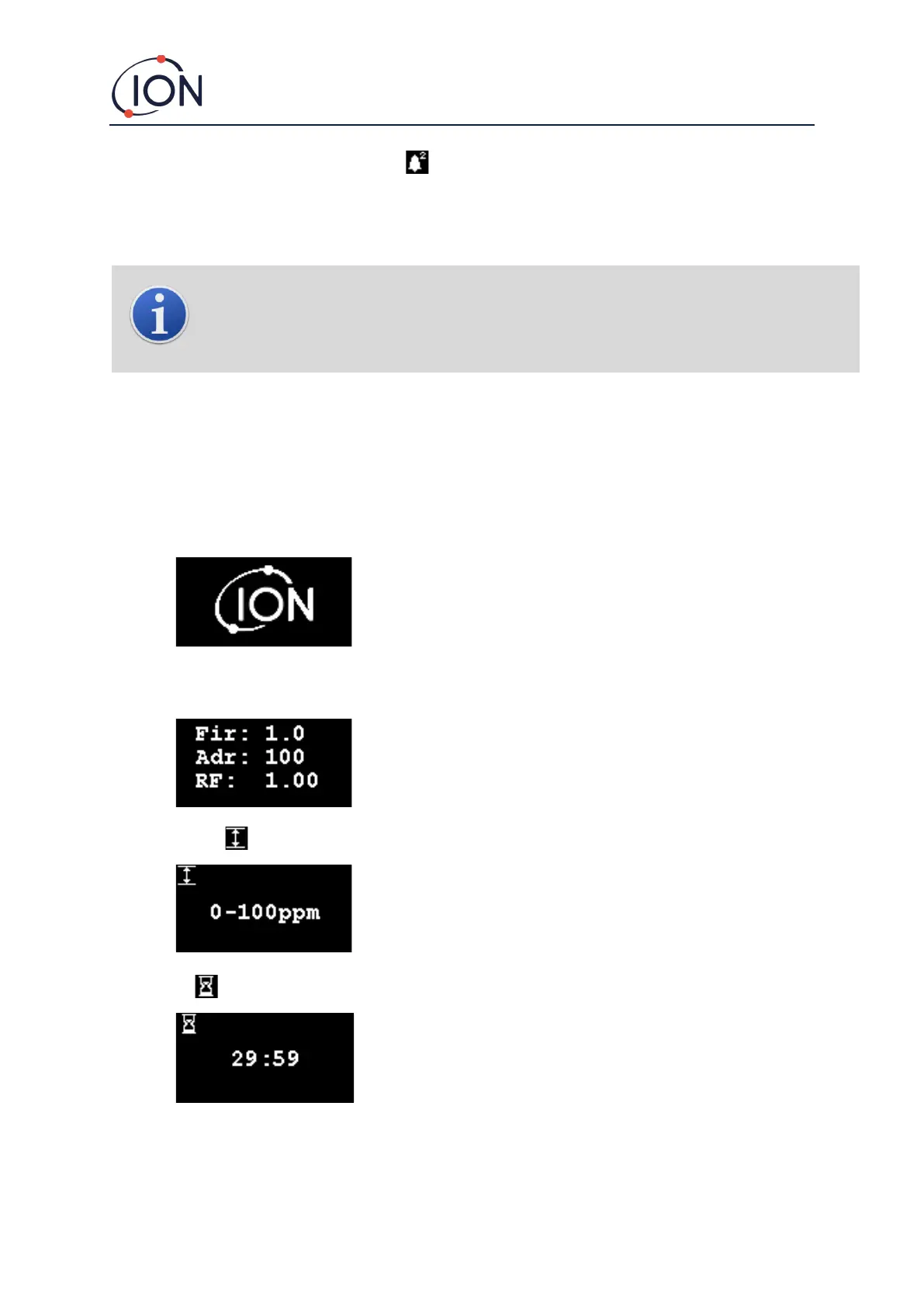 Info screen 1 then appears for 3 seconds. It displays the following: