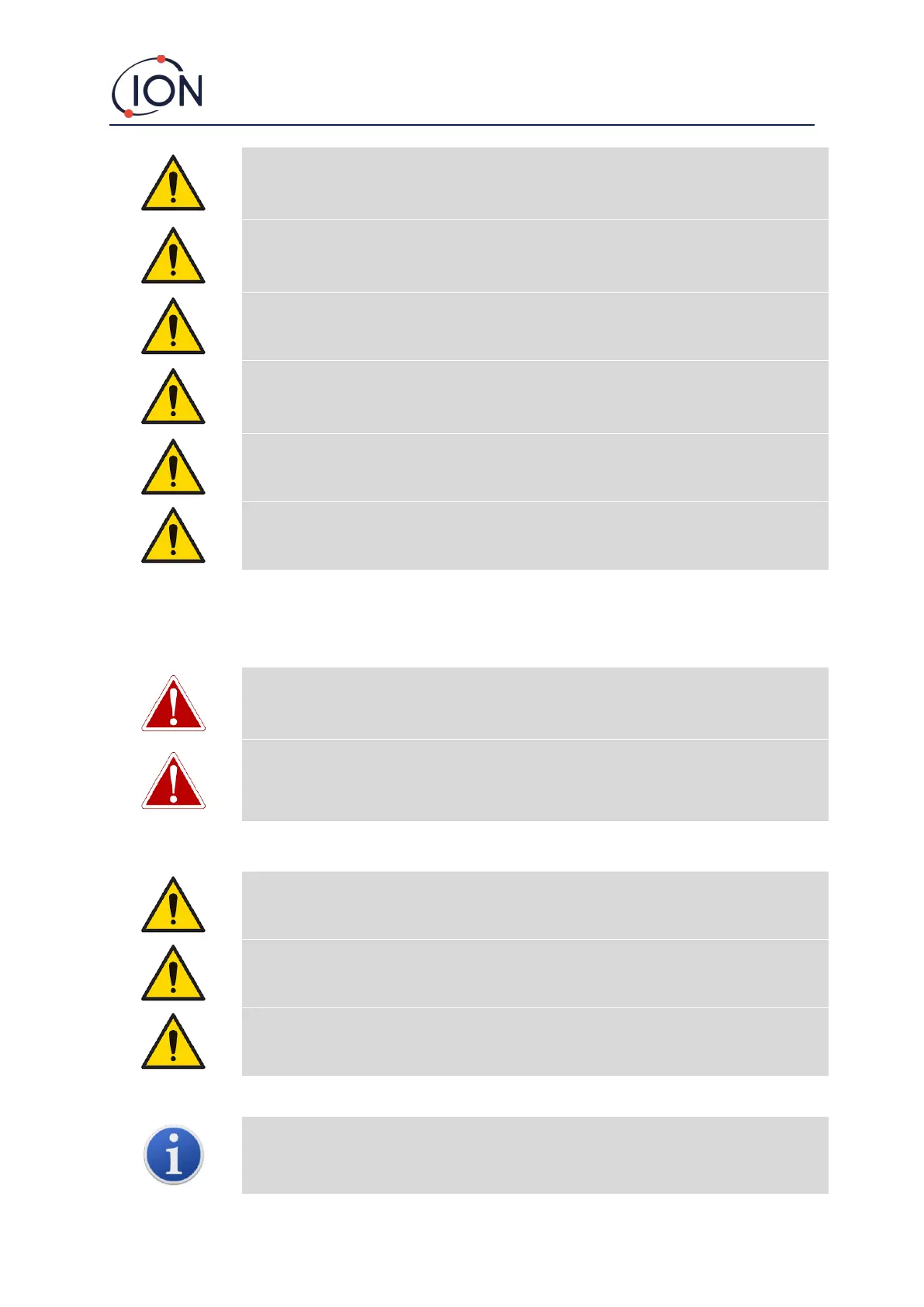 Hazardous environment and by ION Science Ltd authorised service centres only.