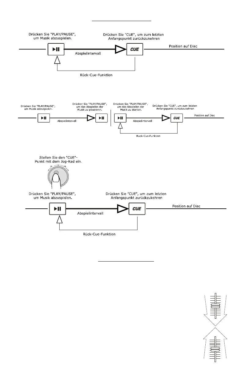 zurückgesetzt. Dies ist der Cue-Punkt. Abwechselndes Drücken der Tasten “PLAY/PAUSE” und “CUE” führt zum beliebig oftmaligen