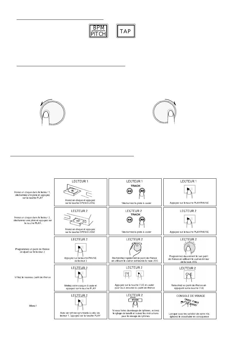 rythme de la musique qui joue sur le lecteur 1. (Cette procédure peut être faite sur l’un ou l’autre lecteur)