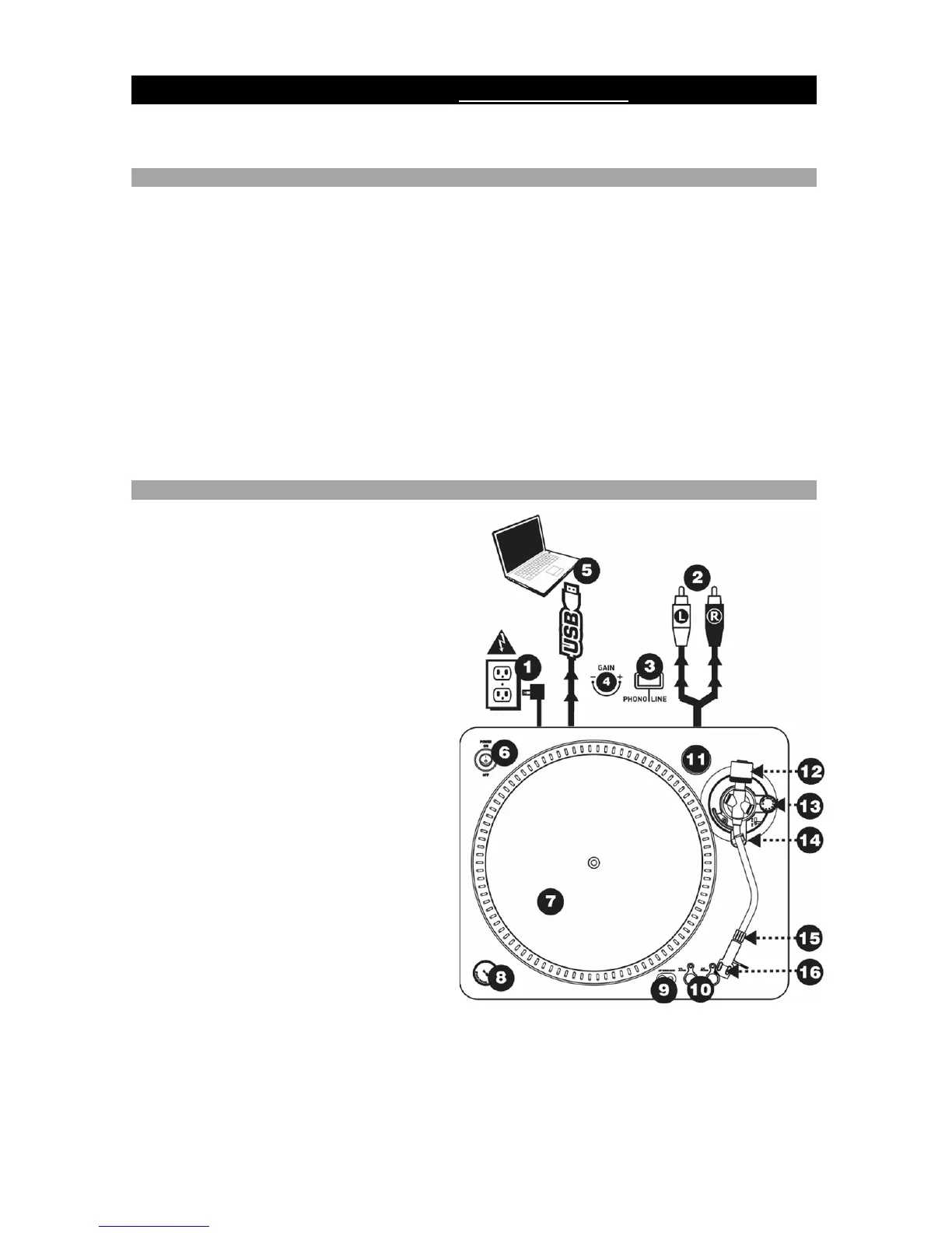 6. Power Taste: Mit dieser Taste schalten Sie den Turntable ein und aus.
