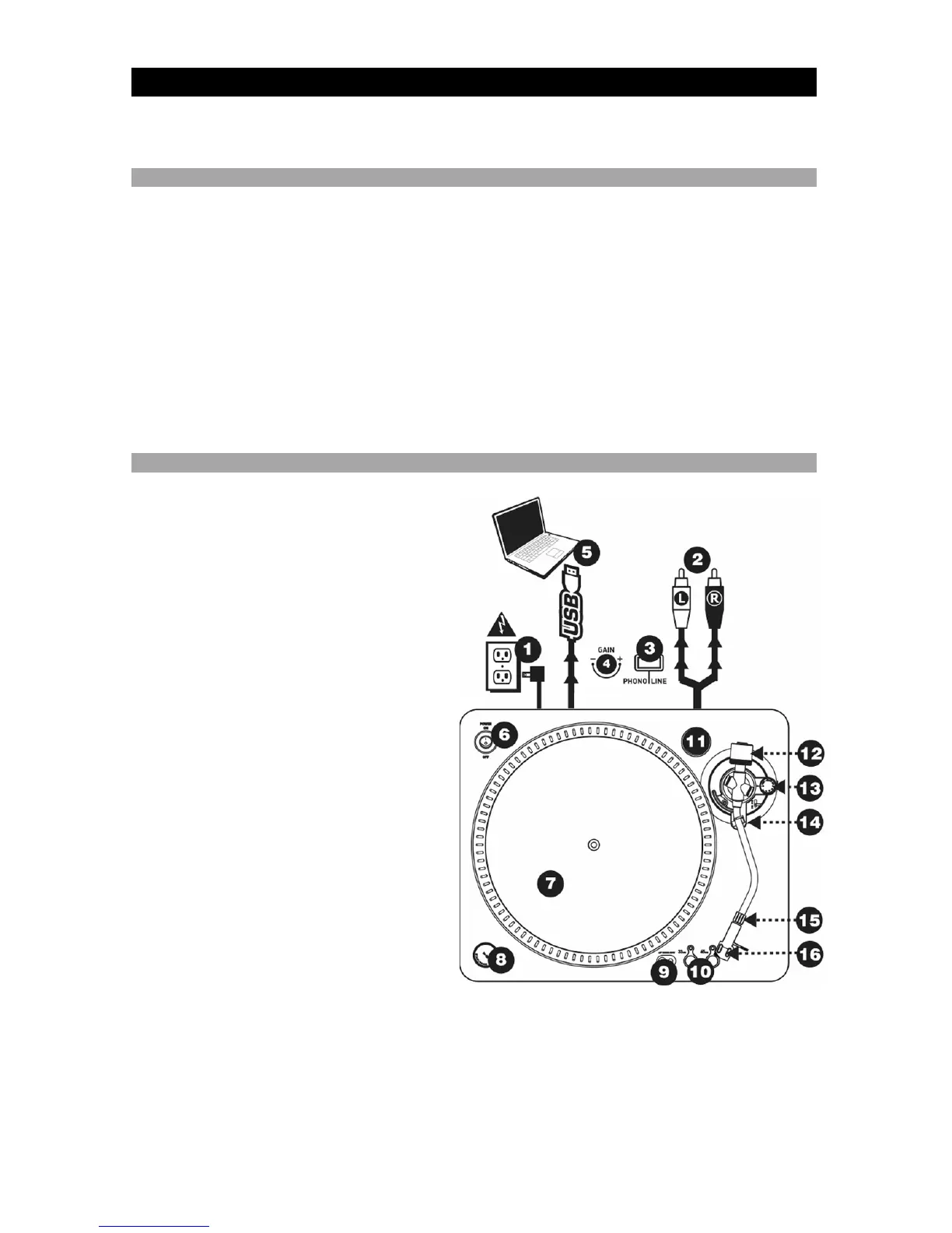 5. Uscita Audio USB: servirsi del cavo USB in dotazione per collegare il giradischi al computer. Per trasferire i