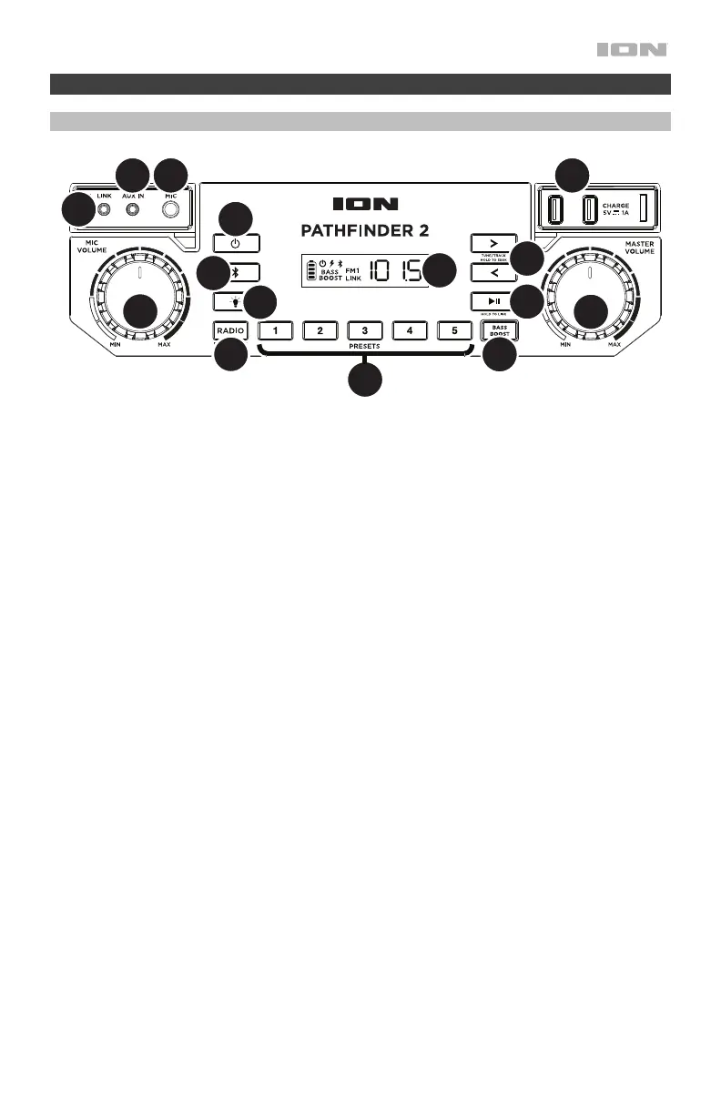 7. Play/Pause/Link: Press to play or pause a track from a connected Bluetooth device.