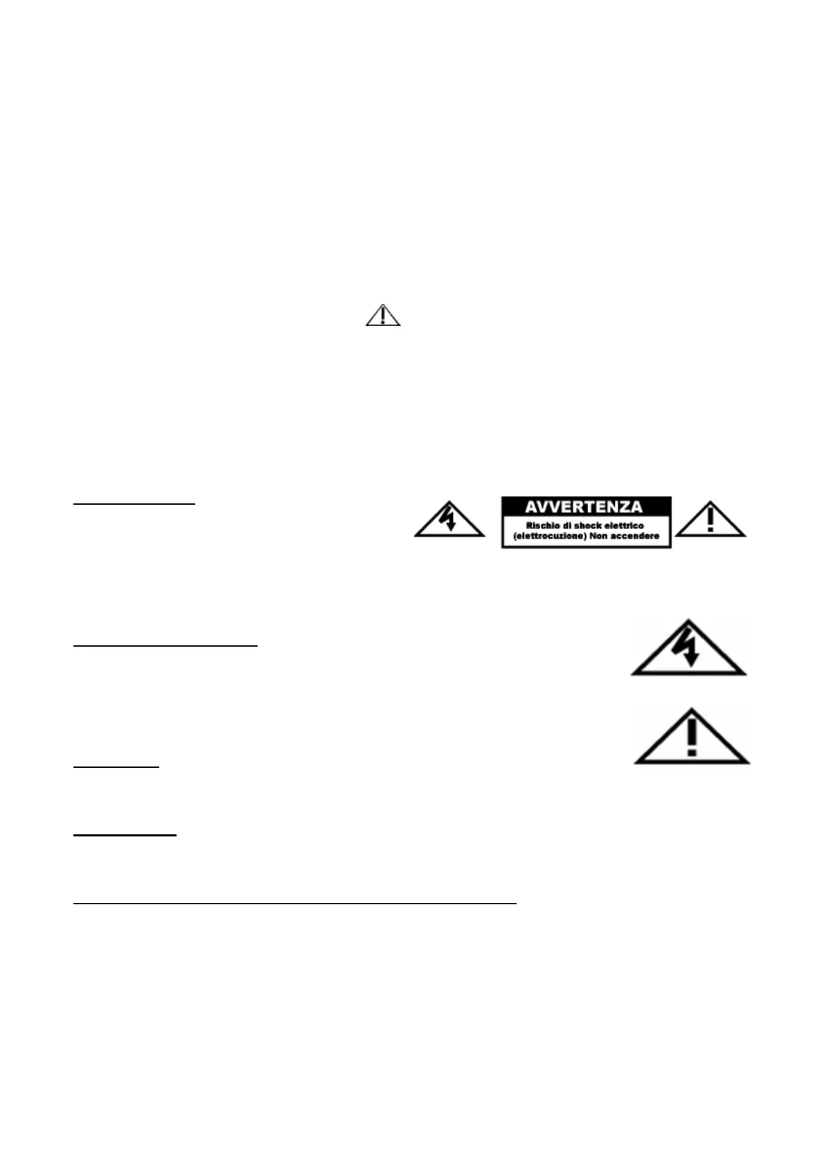 AVVERTENZA: Per ridurre il rischio di incendio o di scossa elettrica, non esporre questo