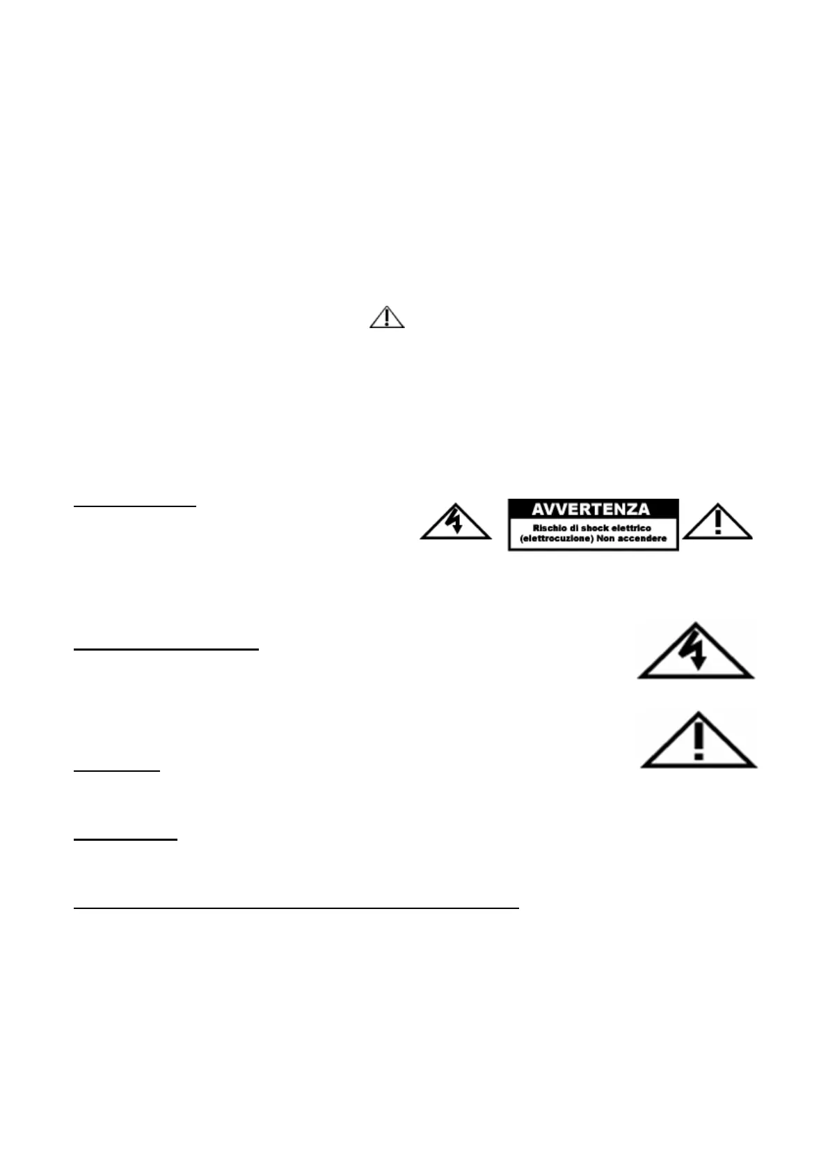 AVVERTENZA: Per ridurre il rischio di incendio o di scossa elettrica, non esporre questo