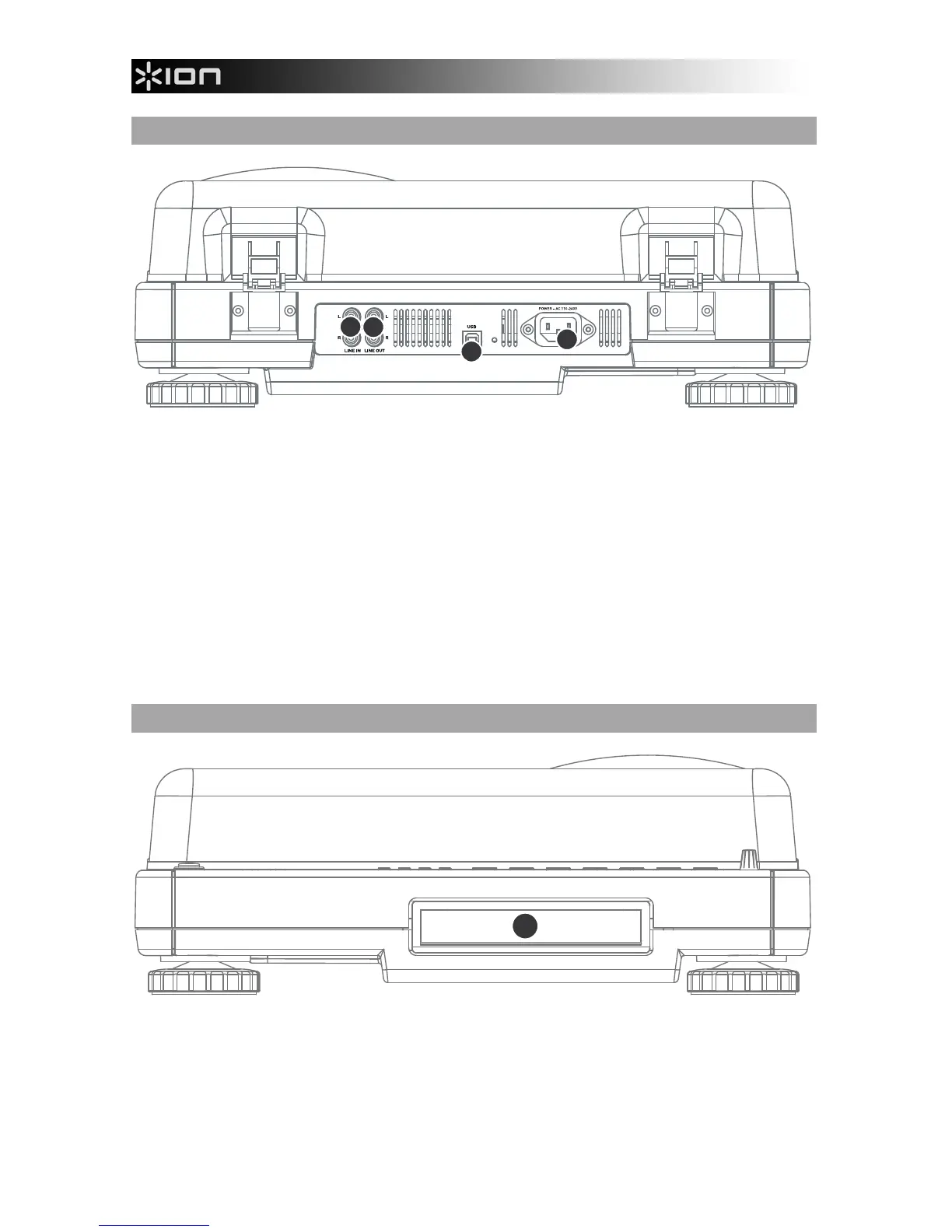 1. Netzkabelbuchse: Verbinden Sie das mitgelieferte Netzkabel vom Plattenspieler zu einer