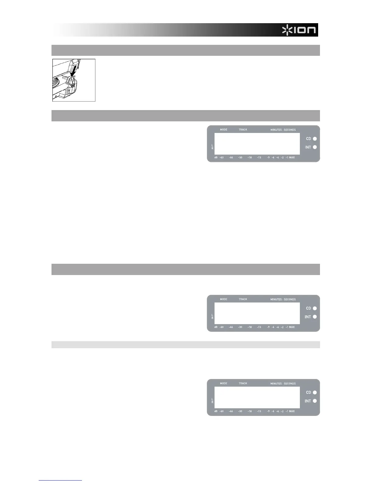 wordt aangegeven door de twee LEDs (CD en INT) die zich aan