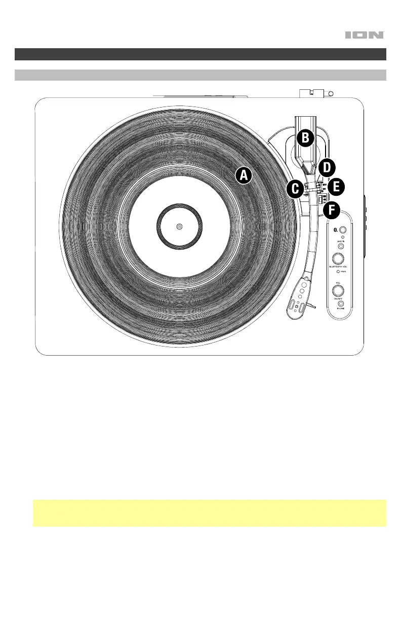 F. Conmutador de 33 / 45 / 78 RPM: Este conmutador controla las RPM del plato del giradiscos.