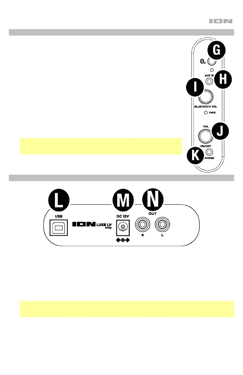 L. Sortie audio USB : Utilisez le câble USB inclus pour brancher la platine tourne-disque à un ordinateur.